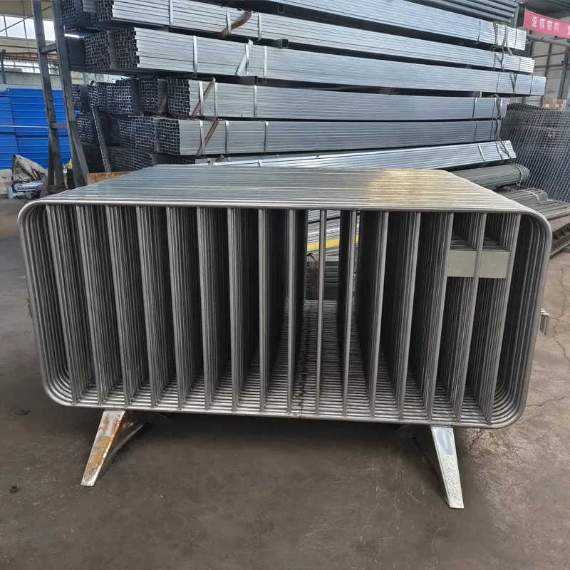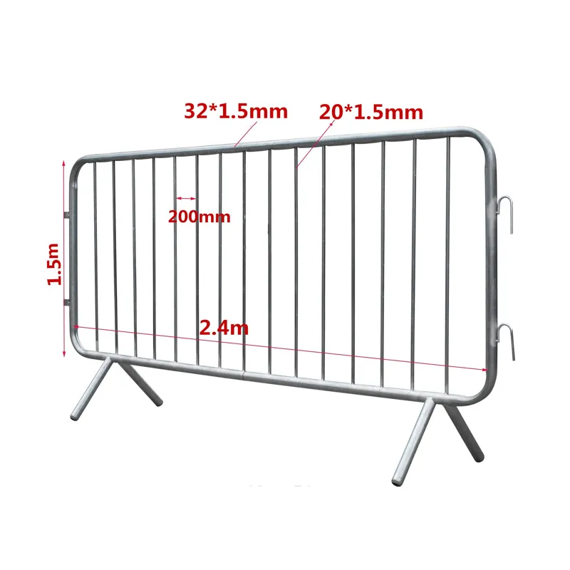 Strength is non-negotiable. Each barrier is constructed from 1.5 mm-thick galvanized steel, with reinforced horizontal rails and welded joints that resist bending under force—critical when crowds surge or equipment bumps against them. The base, available in 8kg or 12kg options, anchors securely to the ground, preventing tipping even in windy conditions or with sustained pushing. This robust build ensures the crowd control barrier stands firm, whether managing stadium crowds or securing industrial perimeters.