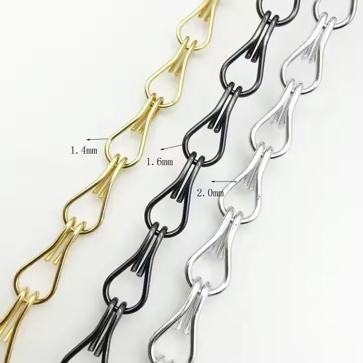1.6 mm × 24 mm × 12 mm 2.0 mm × 24 mm × 12 mm 1.6 mm × 33 mm × 12 mm 2.0 mm × 33 mm × 12 mm More curtain chain link sizes can be customized.